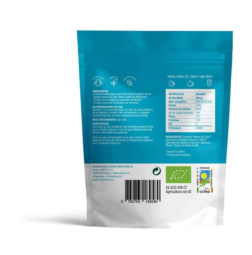 Extractos orgánicos de Melena de León , Reishi y Agaricus .