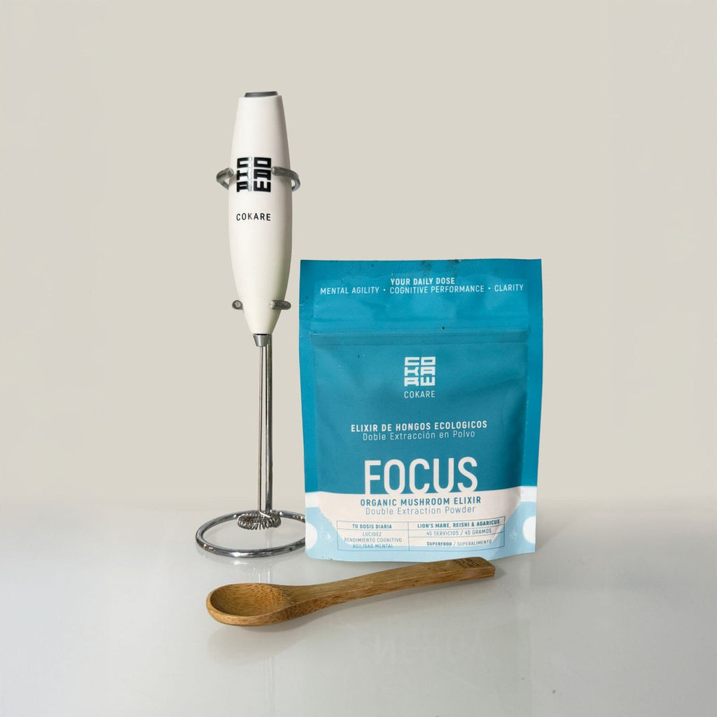 ELIXIR PACK FOCUS - Mezcla orgánica de hongos melena de león, reishi y agaricus para apoyar el cerebro con Espumador de leche GRATIS